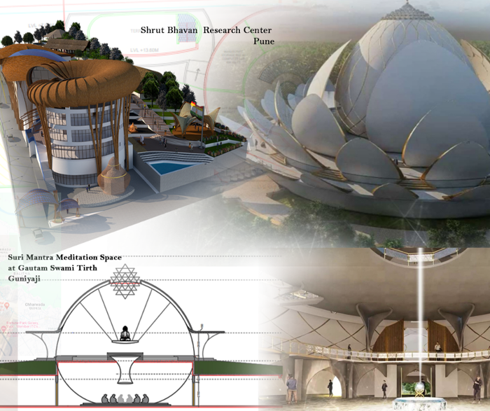 where earth’s models are replicated to create a geo biological conducive & sustainable building, wrapped up in annatural organic architectural form. All recent projects such as Guru Charan Tirth, Shrut Bhavan research centre, RahoriBhakatmar Center, Guniyaji Suri Mandir etc are designed following the science of Bio-architecture.